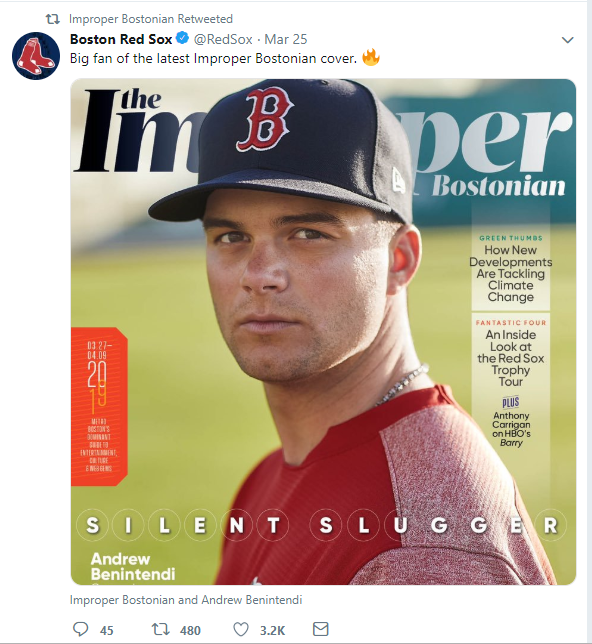 Audience Engagement and Growth: At @theimproper, I grew its audience 7% to nearly 90,000 followers and developed a strategy to increase engagement particularly from high-profile cover subjects, like Red Sox outfielder Andrew Benintendi (above) and actress Debra Messing.